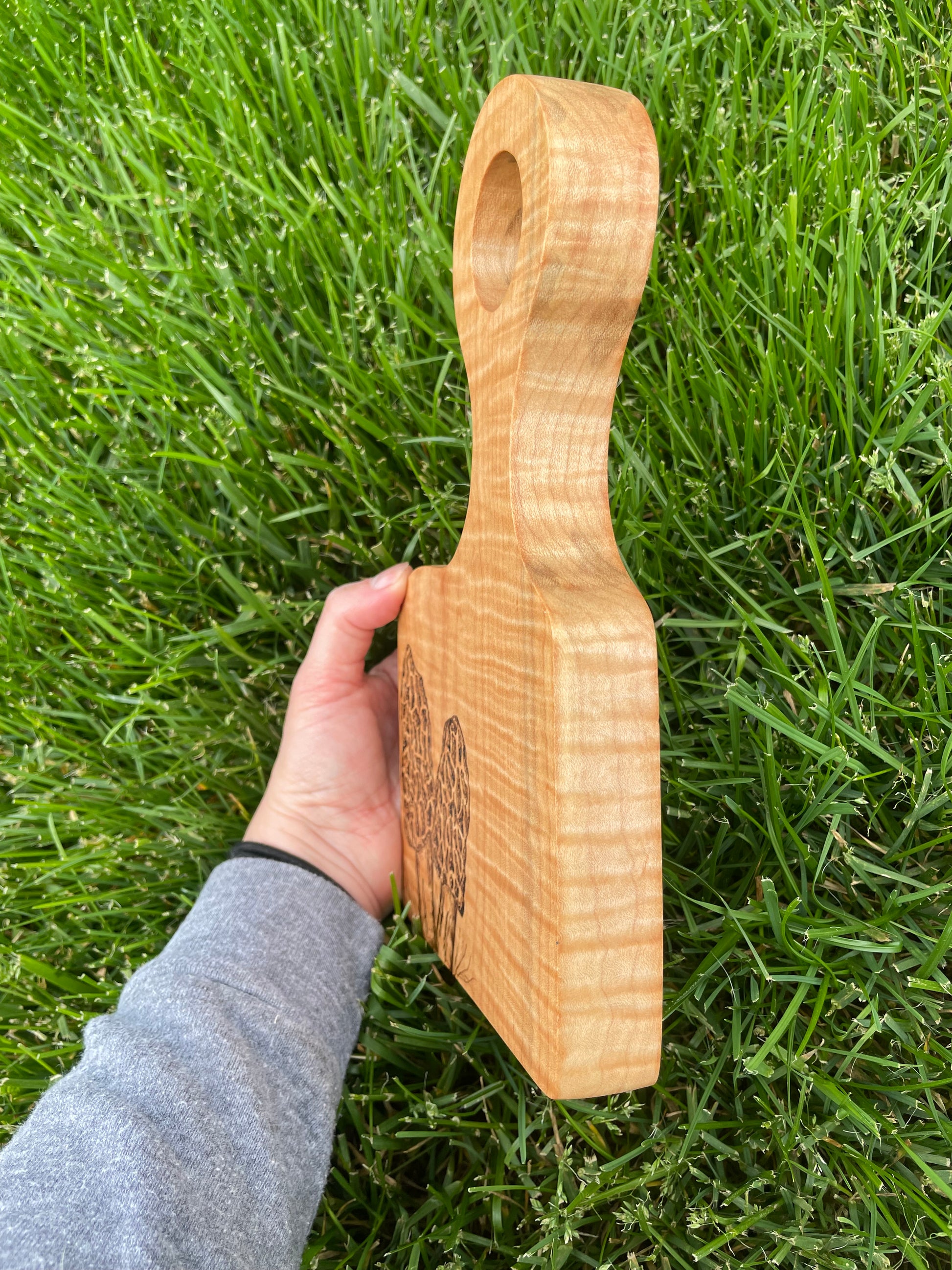 To care for this board, please ensure that it is not submerged in water or put in the dishwasher. Clean with a warm, damp cloth and a mild soap. Regularly condition with butcher block oil or coconut oil.