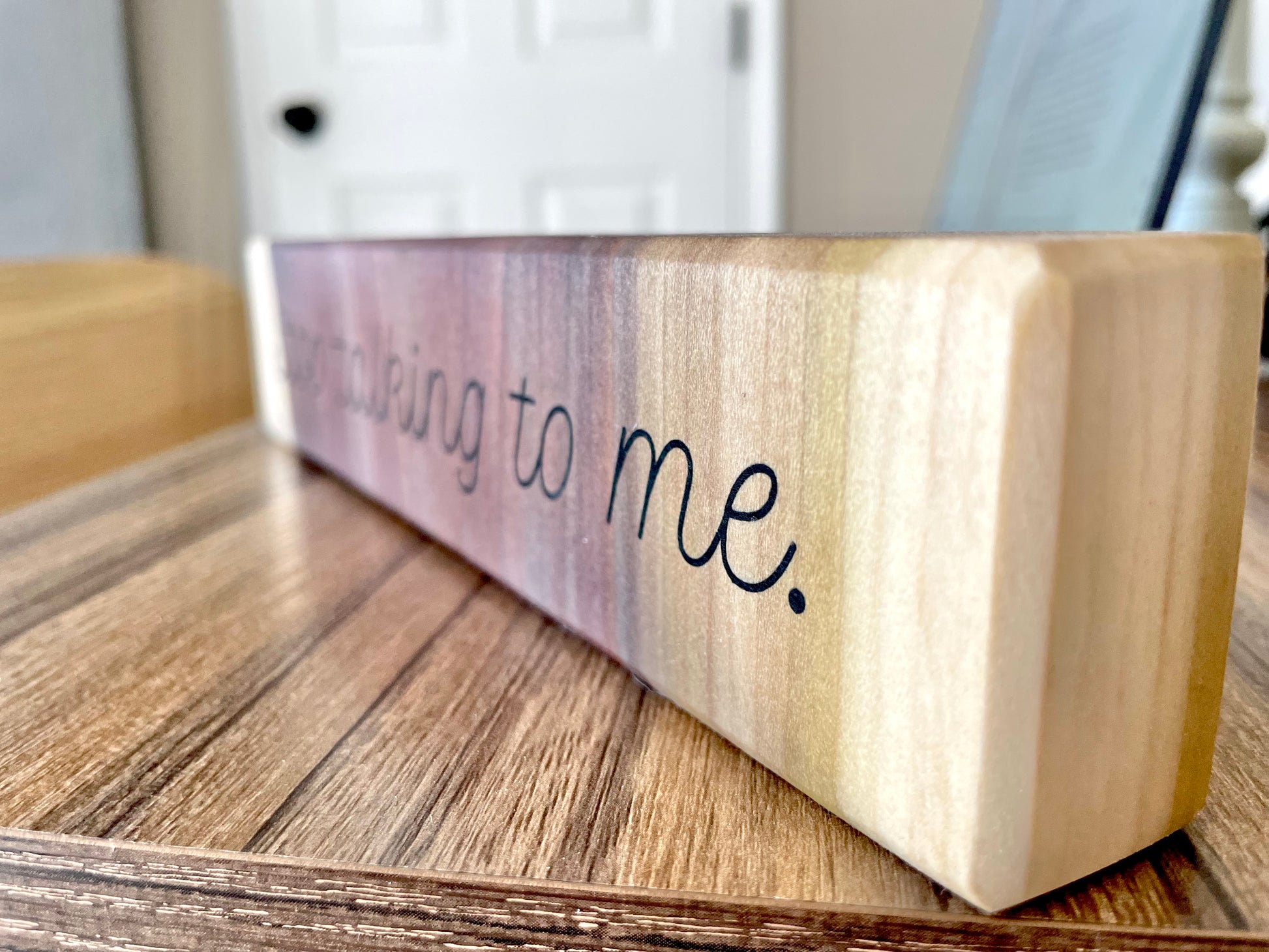 Each piece is completely unique, and the grain will not be exactly as shown. Every sign is cut from the same rainbow poplar board, so it will be very similar to this, just not exactly the same!