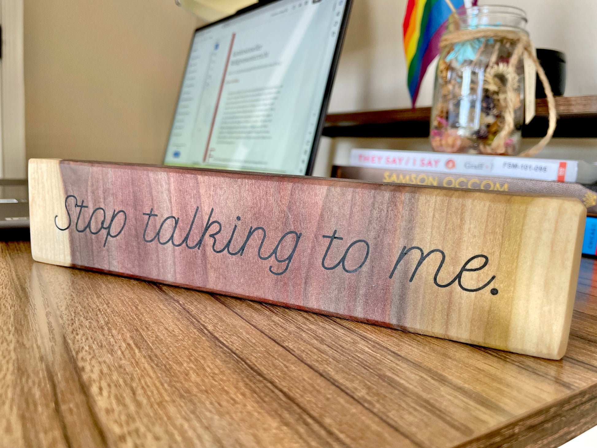 "Stop talking to me." Wooden Sign